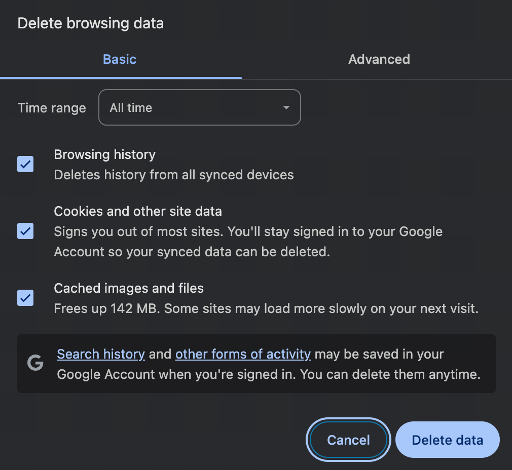 Clearing your cache and cookies often fixes performance, loading, or sign-in issues.